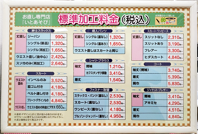 洋服のサイズ直しを始め、釦付けからかけつぎオーダーまで洋服の事なら何でもお気軽にご相談下さい。