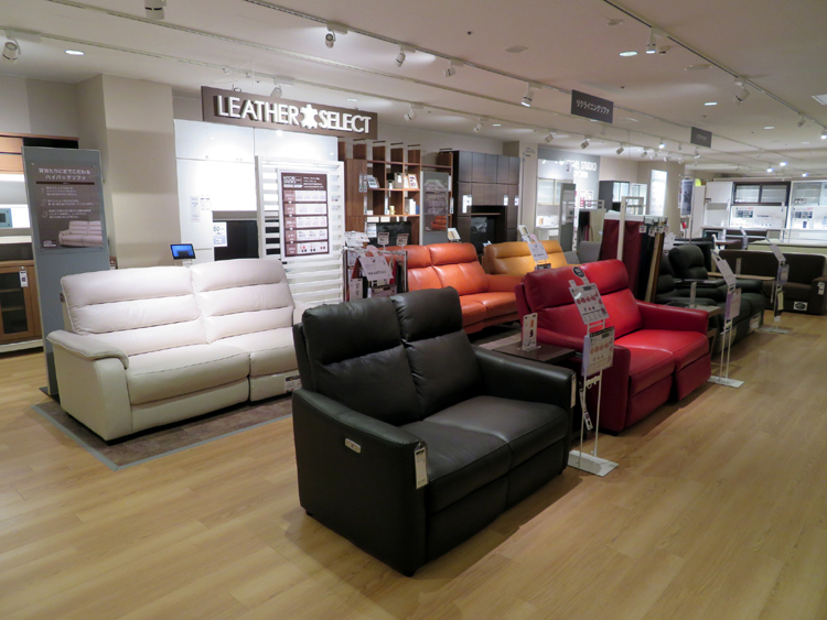 ソファ・ダイニングセット・食器棚やベッドなどの大型家具から、カーテン・カーペット・寝装品や食器・家庭用品などの暮らしを彩る商品を扱う。